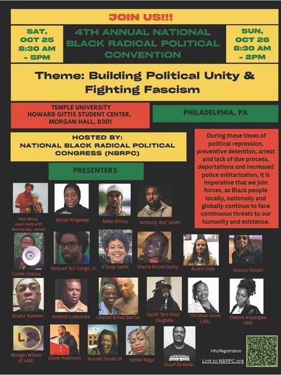 This is the report of the fourth annual convention of the National Black Radical Political Congress. The theme of the 2025 convention was "Building Political Unity & Fighting Fascism .” This event was an in-person event, however the plenary sessions and personal narrative panels were live-streamed. The 85 registrants, attendees and delegates represented the following 14 states plus Ontario, Canada: